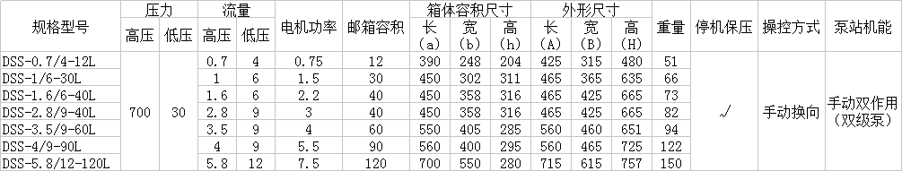 DSS選型參數(shù)表: