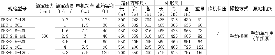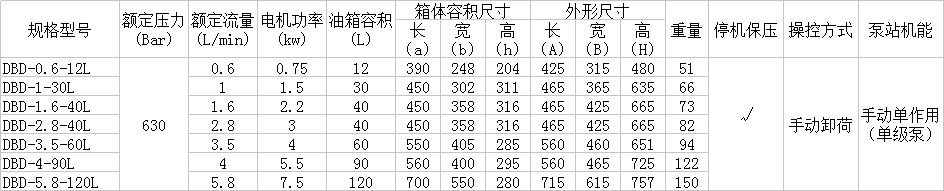 DBD選型參數(shù)表: